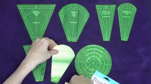 This is a versatile set of ten templates that can be mixed and matched to create dozens of Dresden Plate quilt blocks, cut tumbler, and circle shapes, AND for free-motion machine quilting with a ruler.