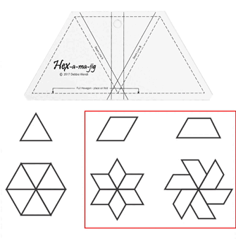- Use this quilting tool to create half hex shapes with out having to create Y shaped seams.