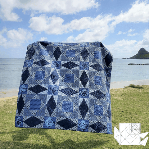 There are three different blocks that you make , diamond block, a square on point block, and a square in triangle block. You sew these blocks together to make the "Storm at Sea" quilt top.